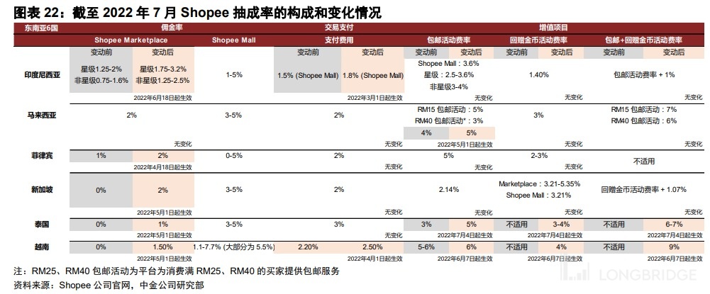 根据 Shopee 在官网上的披露,自今年 4 月起公司在东南亚各国市场多次上调了佣金费、支付费用和包邮费率。在 7 月也新公布了在泰国上调变现率的决定,因此展望三季度,Shopee 的变现率会有继续提升的趋势。