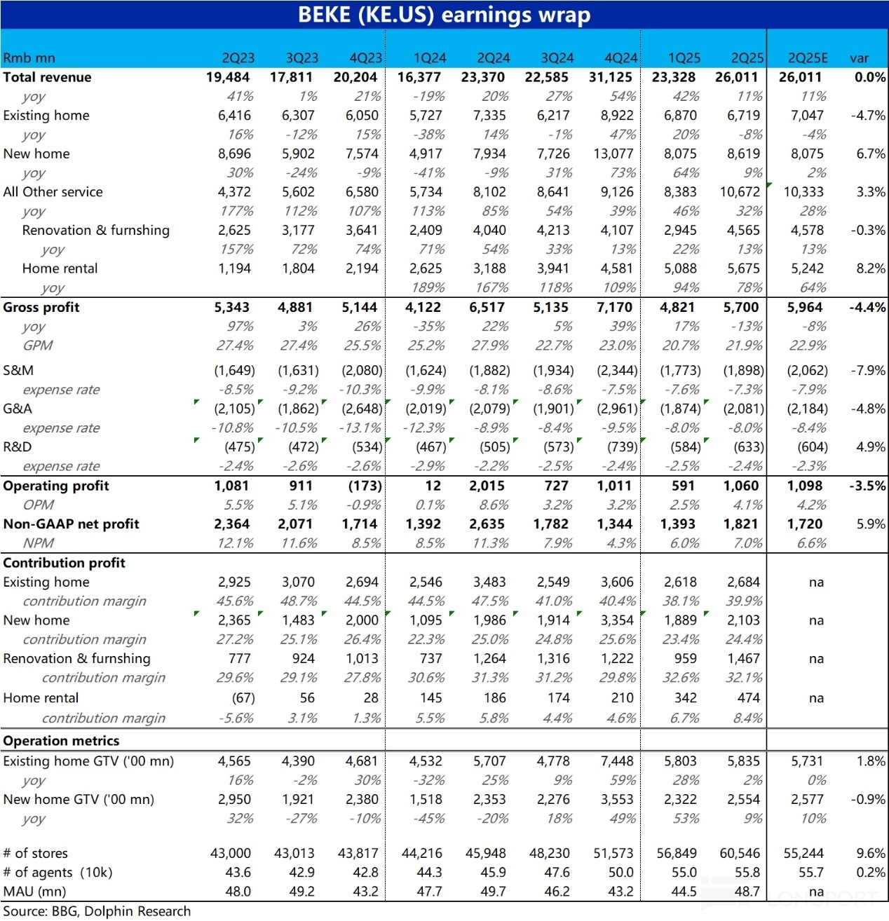 d.非房屋交易服务增长:家装家居业务和房屋租赁服务业务均实现了高质量增长。截至第二季度末,房屋租赁服务在管租赁单元超过 59 万套,较 2024 年同期的逾 31 万套 实现快速增长。