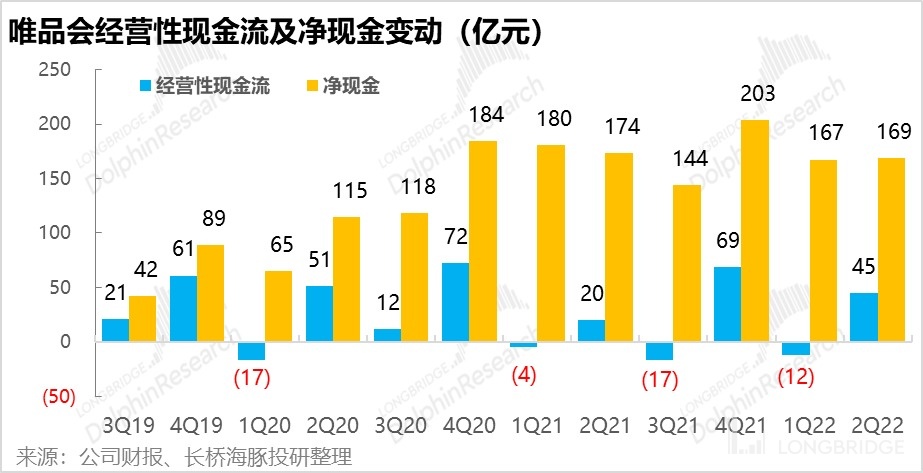 但同时,唯品会作为一个有盈利且 “没处花” 的下行期公司,一年仍能带来近 100 亿的经营现金流,且在本季度末手握 169 亿净现金。