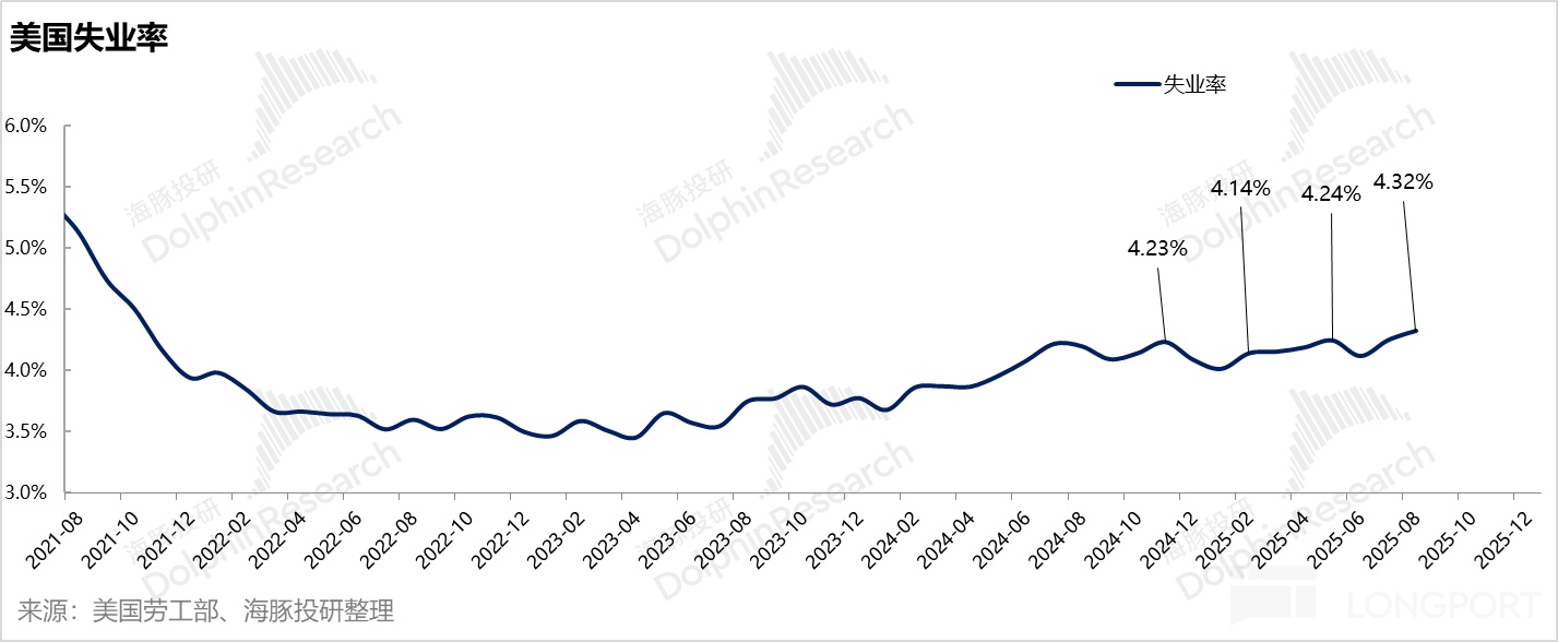 另外神奇的是,八月的非农就业来回调整之后,失业率是在抬头,但整体仍恰到好处地落在相对健康的 4.3%。这失业率水平,从历史上来看,仍是比较健康的水平。