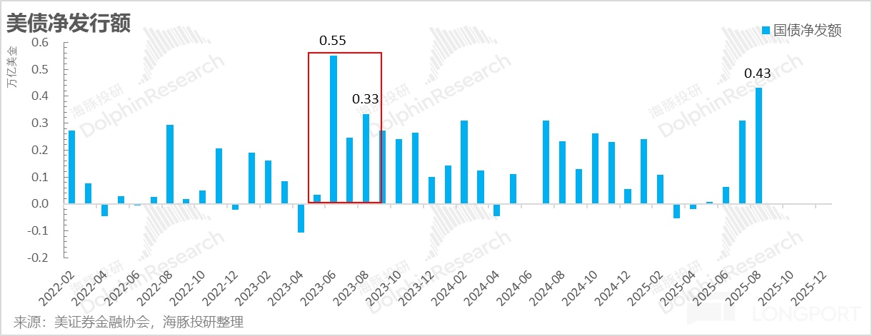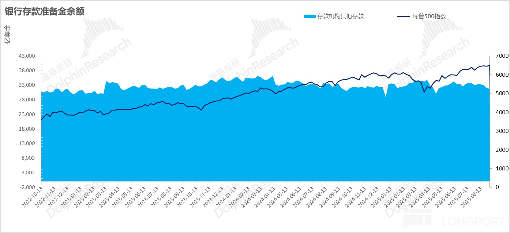 从美联储总资产的变化中也能看出,因逆回购余额的剩余空间不多,银行的存款准备金余额已经在加速消耗,8 月美债净发行也创下 2023 年 6 月以来的次高水瓶,标普 500 指数高位徘徊。