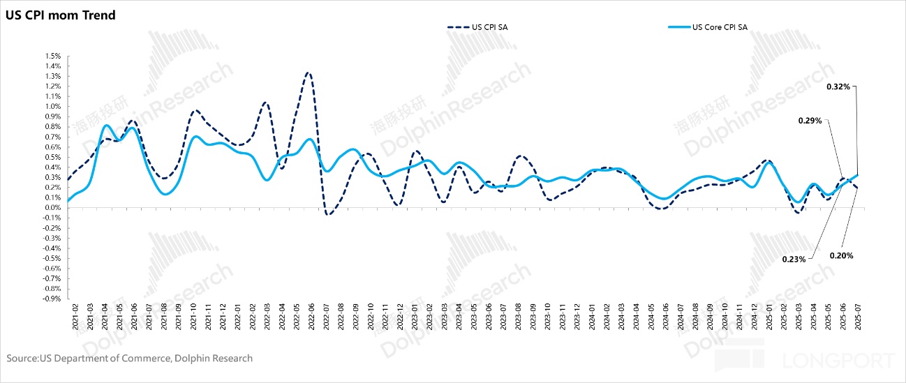 a. 现在 CPI 这边的天平是虽然边际上行,8 月环增 0.32%,在上行,但考虑到关税因素,不算夸张);