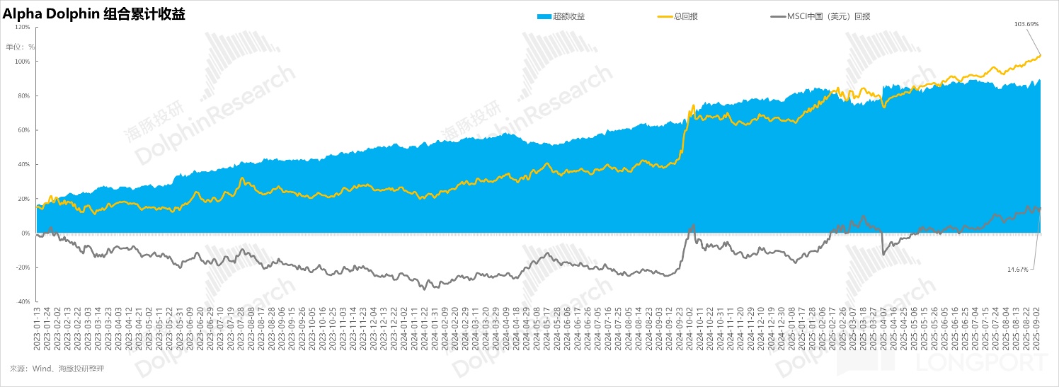 自组合开始测试(2022 年 3 月 25 日)到上周末,组合绝对收益是 104%,与 MSCI 中国相比的超额收益是 89%。从资产净值角度来看,海豚君初始虚拟资产 1 亿美金,截至上周末超过了 2.07 亿美金。