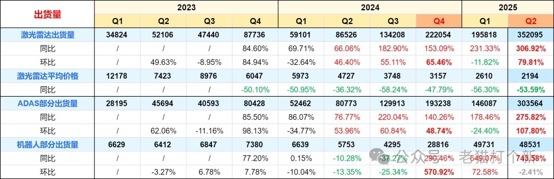 美股近期走势主看财务或者出货量数据,禾赛行情起点是 24Q3 业绩强劲并且公布了强劲的 Q4+ 全年指引,后近两期的业绩 2024Q4、2025Q2 表现强劲,整体就是业绩表现 + 上半年新能源车销售行情带动的。