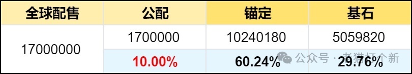 【配售】机制 B,公配锁 10%,整个盘子 38.76 亿,公配盘不到 4 亿。