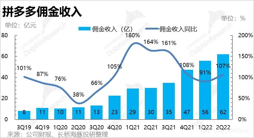 此外,公司的佣金收入(包括支付手续费收入,多多买菜收入和电商佣金收入)本季营收为 62 亿元,同比增速达 107%,同样较上季度加速增长。虽然幅度不如广告业务如此夸张,也远远超出了卖方预期的 52.3 亿。