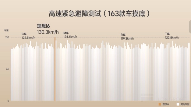 与其他车型不同,理想坚持在车辆满载的状态下,以不低于130km/h的高速执行国际通用的紧急避让测试, i6测试成绩130.3 km/h。这一数据也直观地体现在驾驶感受上,当车辆在高速行驶中进行紧急变向时,底盘能够稳稳地“拽住”车身,做到不滑不飘,给予驾驶者极大的信心。