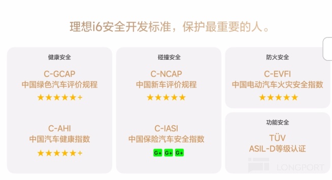 b. 硬件配置: i6是同级别中唯一配备三腔远端气囊和二排侧气囊的车型,并且拥有最大的气囊体积,旨在提供最全面的碰撞保护。