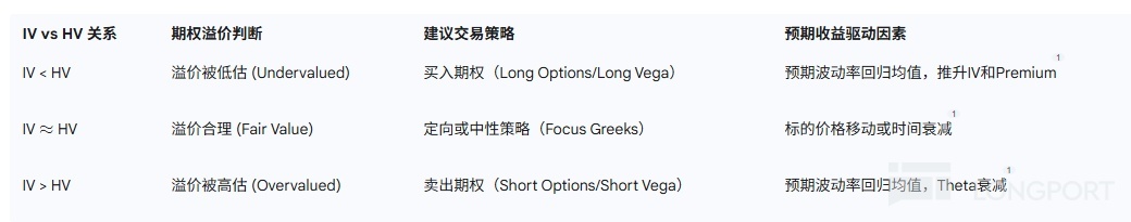 IV > HV → 期权可能高估 → 考虑卖出策略