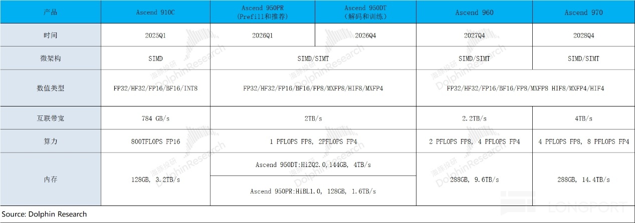 c. 华为前段时间发布会更新了芯片设计最新的路线路:其中规划于 2027 年四季度推出的升腾 960 算力指标 2PFLOPS(FP8),已经比肩英伟达 H200(FP8——1.5PFLOPS),且按年度更新一年后的升腾 970。注意,英伟达 H200 代工为台积电的 4nm 工艺。