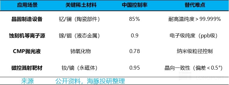 按照多份行业报告,稀土行业上,中国领先的核心壁垒主要是中游分离、冶炼的工艺、专利和合规认证壁垒。美国半导体行业要摆脱对中国产能和技术的依赖应该还需要 5-10 年时间。
