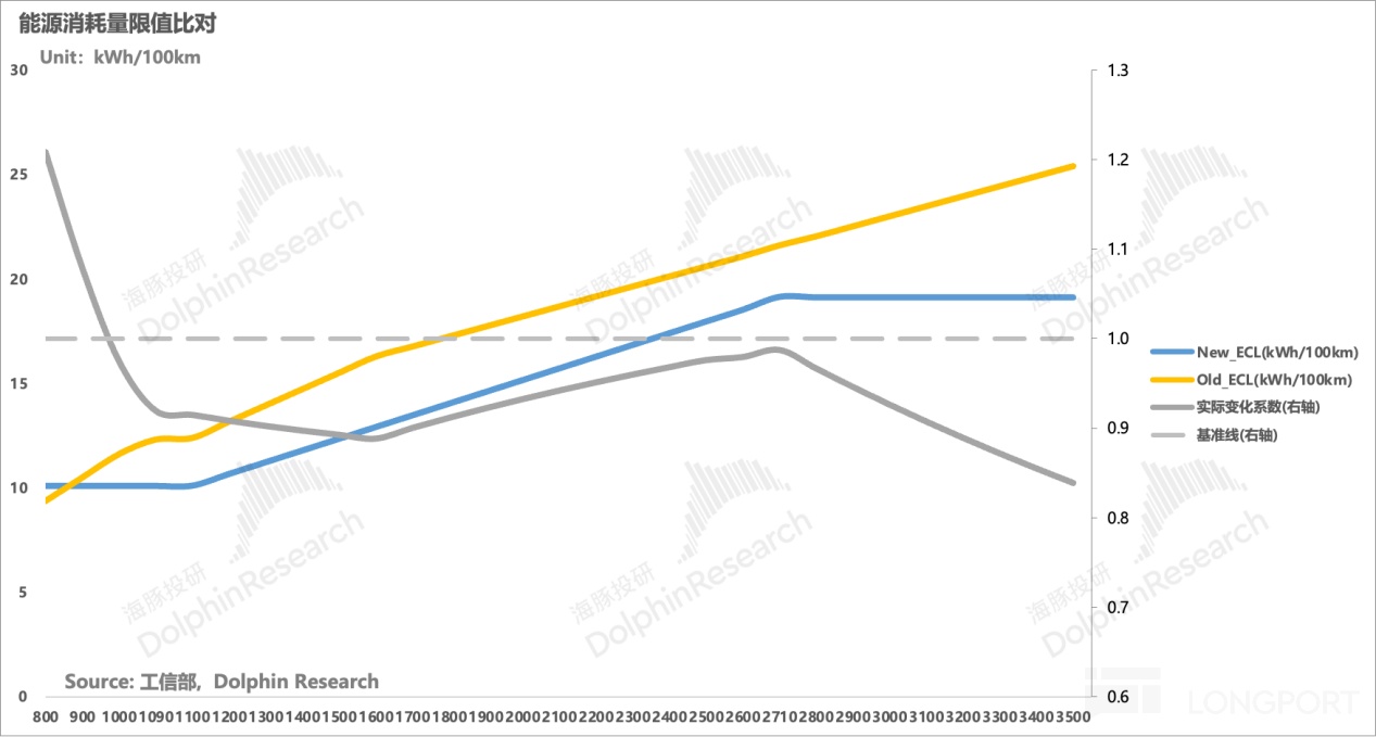 先给大家 看一下新的政策调整,关键调整围绕 1)能耗、2)不同车重的不同能耗(含电耗和油耗)。