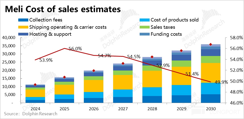 展望未来,海豚认为,在我们预测的5年期内,Meli的履约成本大概率仍会继续连年小幅度提升,待履约体系成熟后再掉头缓慢走低。同时,又因拉美电商市,尤其是在巴西的竞争会长期持续,出于谨慎我们也不预期在5年内Meli收取的履约变现会有明显的走高。