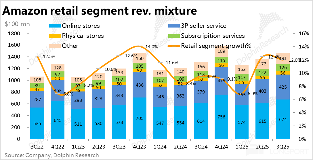 3、广告业务继续强劲增长:各细分业务线中,广告业务依然是 “最亮眼” 之处。本季广告增速达 23.5%,在所有业务线中最高,且连续三个季度加速增长。结合业内分析,除了稳健的电商广告外,如Prime Video 等亚马逊其他多媒体内容上的广告起量是主要拉动力。
