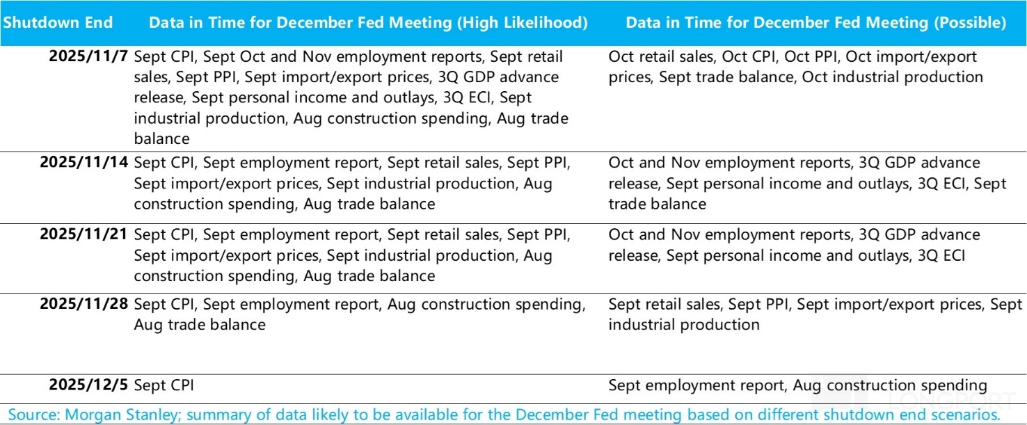 海豚君更倾向于认为,关门越久,由于经济逐步受到影响、就业受到影响,即使 12 月因为美联储 “谨慎行事” 而不降息,那么 2026 年反而降息的幅度会更高。 目前市场对政府重启的几个关键窗口预期是 11 月中旬到 12 月上旬之间,如果谈判恶化,那么延续到明年底或者明年初也不是不可能。