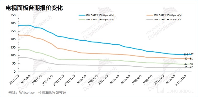 既然京东方的收入端和毛利率的大幅度下滑,主要原因是面板价格的大幅度回落。那么,我们来看面板价格目前是什么情况。