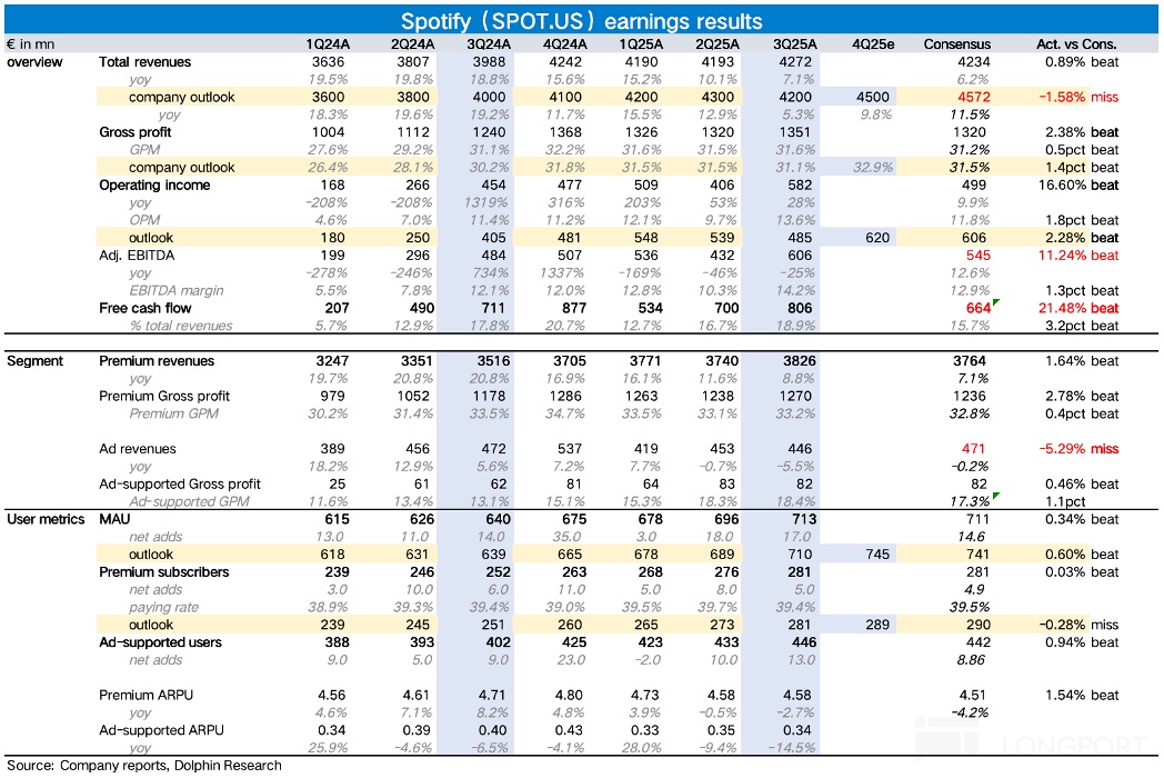 以下是海豚君整理的关于$Spotify(SPOT.US) 的3Q25业绩电话会纪要,财报点评可参考《Spotify的新涨价周期,还能再飞一次吗?》