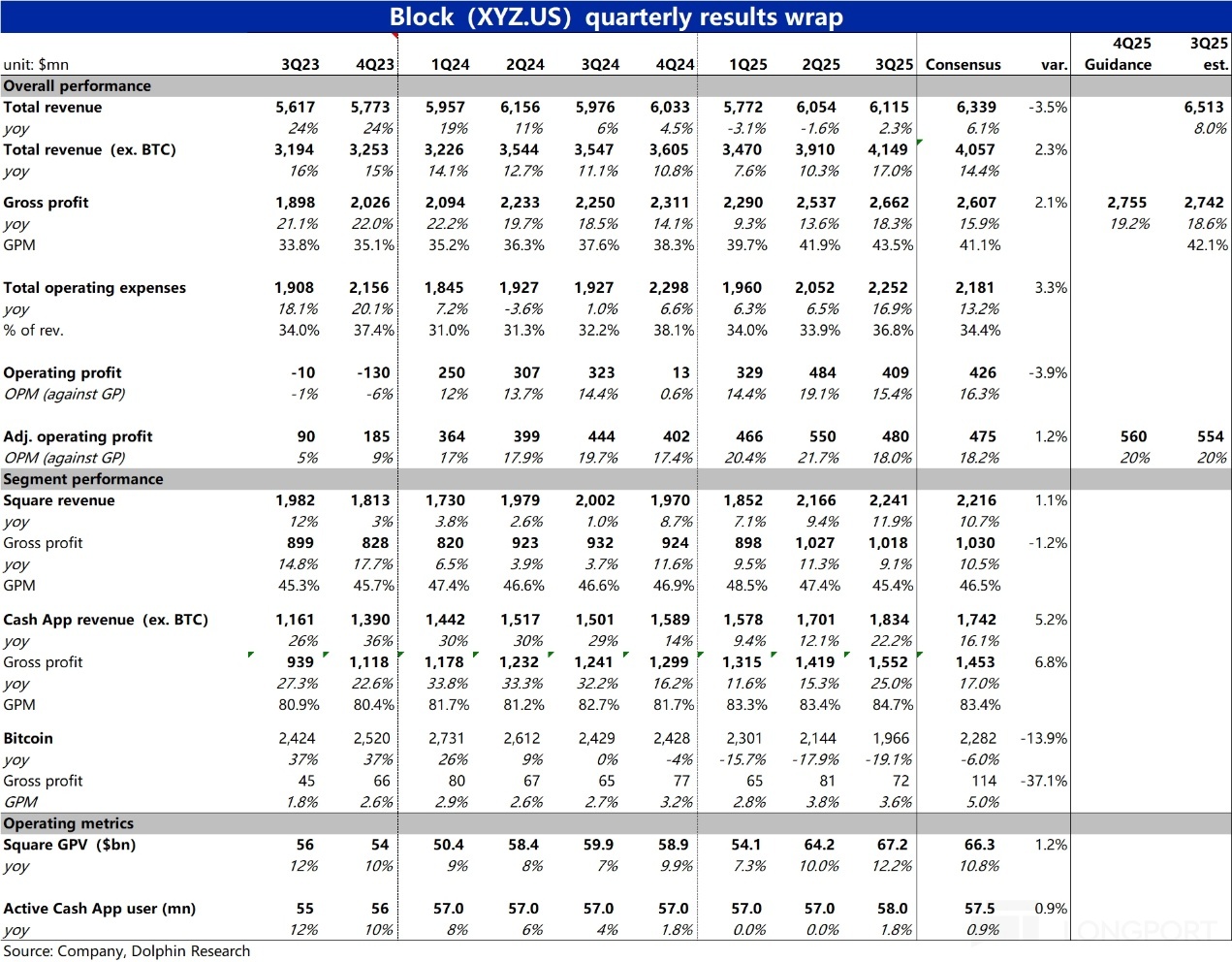 以下是海豚研究整理的$Block(XYZ.US) 在 2025Q3 的财报电话会纪要,财报解读请移步《暴跌 15%,北美支付宝 Block“罪不致此”》
