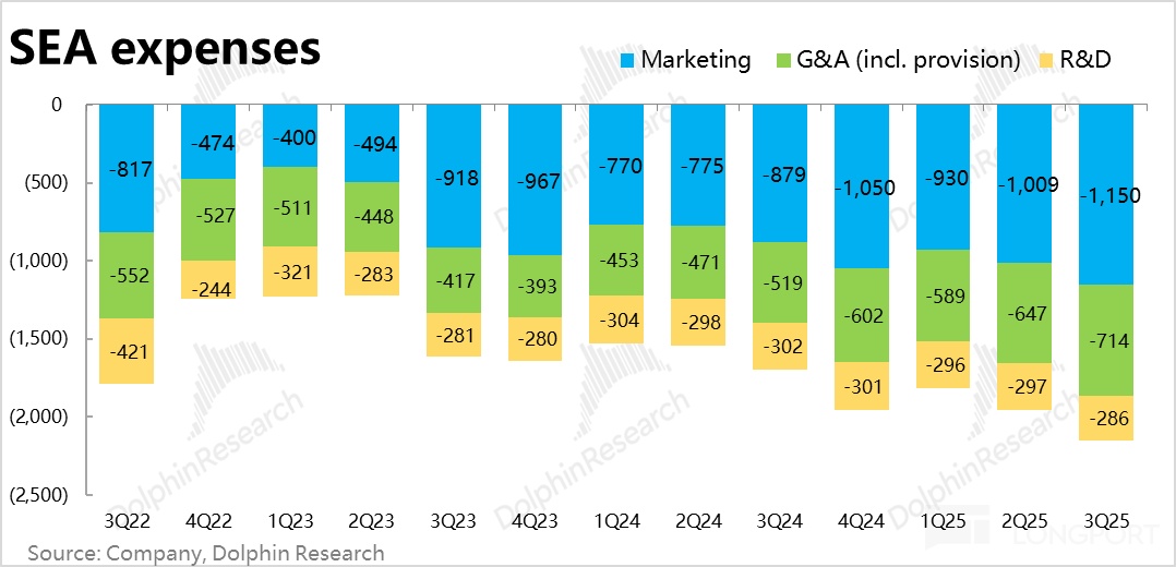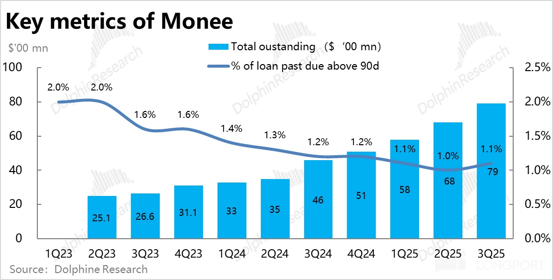 2)至于 Monee 金融业务,从本季来看业绩趋势基本没有明显变化。依旧保持着超预期的强劲增长,和相对稳定的坏账水平。只是随着向新市场&客群的拓展,一方面新市场早期的利润空间较成熟市场一般会更低,早期获客阶段的投入又会较多,因此利润率同样肯能会暂时性的承压。但海豚还是倾向于认为 Monee 的盈利和市场空间尚未充分释放和充分定价。