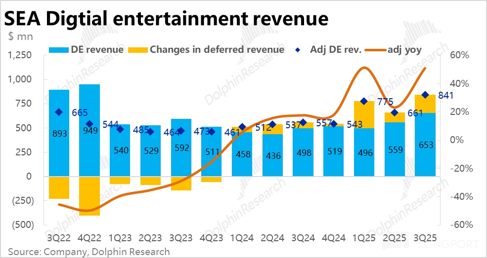 因此,单纯从业绩上看,海豚认为本季和上季度没有本质性的差别。但上季度业绩后 Sea 股价大涨,而这次的走势却相当纠结。海豚认为更多还是由于市场整体情绪的变化,对不确定性远期空间的偏好下降,而对立刻可见的利润确定性偏好上升。