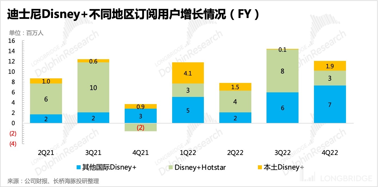 本季度流媒体 Disney+ 用户的新增,主要来源于除北美、印度之外的其他地区。海豚君猜测,估计与迪士尼近期主推的欧洲、拉美地区有关。截至 10 月,Disney+ 总用户规模达 1.64 亿,全平台用户规模达到 2.36 亿。