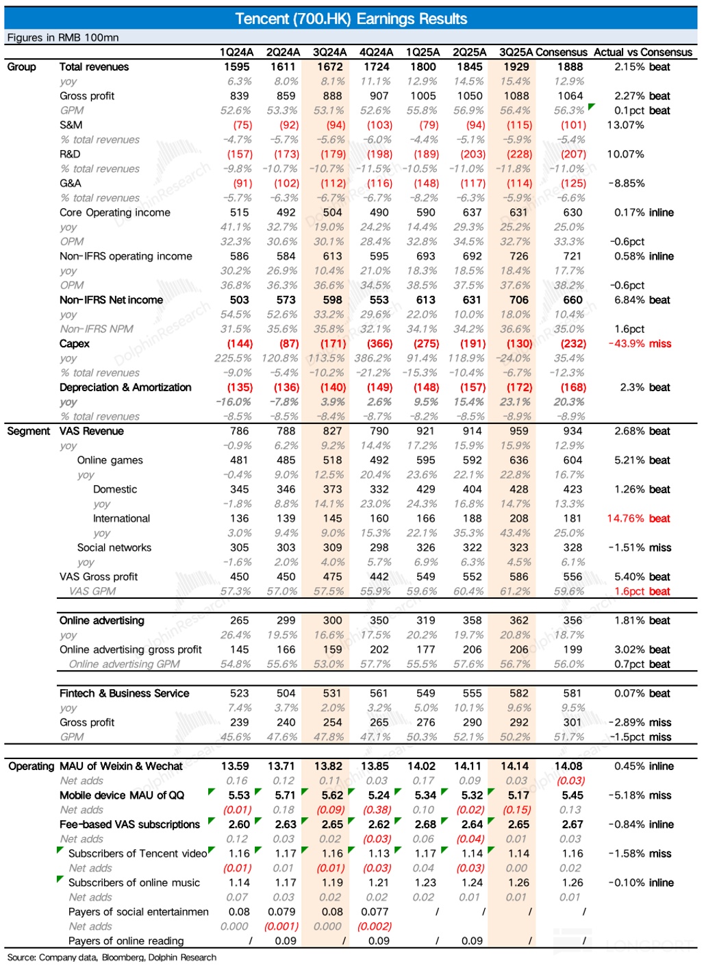 以下为海豚君整理的$腾讯控股(00700.HK) FY25Q3的财报电话会纪要,财报解读请移步《腾讯:不跟Meta玩心跳,只要稳稳的幸福》