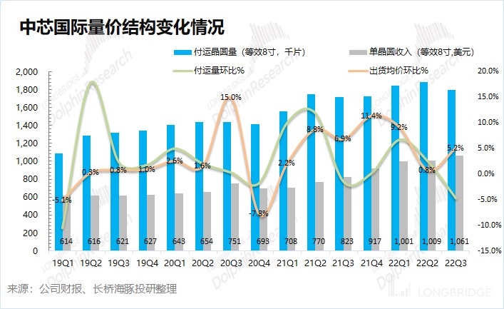 1)量的维度,中芯国际本季晶圆付运量(等效 8 寸)达到 1798 千片,环比下滑 4.7%;