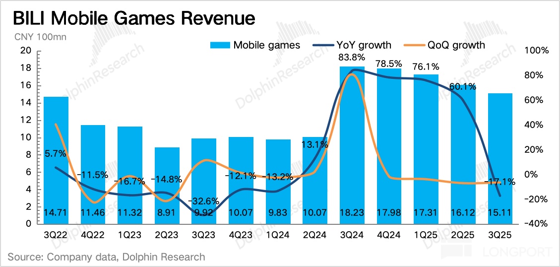 三季度游戏收入开始受到高基数影响,同比下滑 17%,比市场想的更差一些。