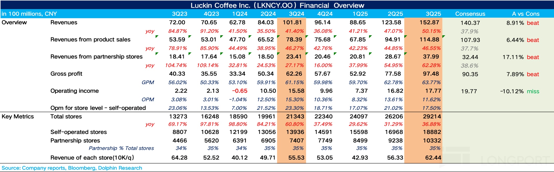 以下为海豚君整理的关于瑞幸咖啡$瑞幸咖啡(ADR)(LKNCY.US) 3Q25FY 业绩电话会纪要,财报点评可回顾《瑞幸:利润 “深蹲”,只是为了更好 “起跳”》