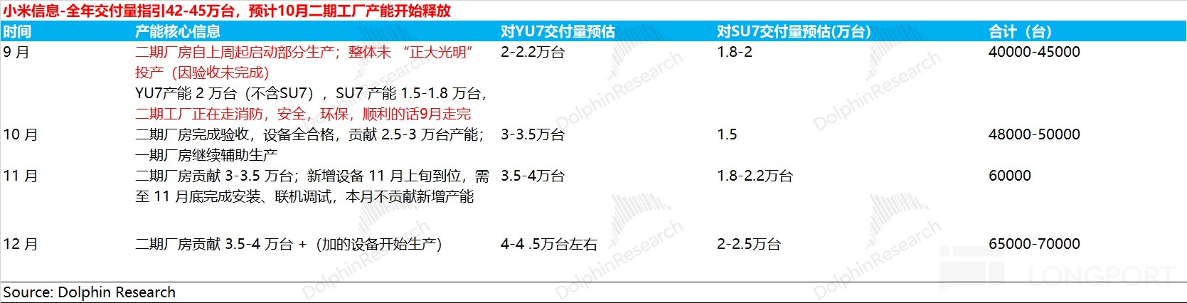 同时供给侧,随着小米汽车产能的爬坡,汽车的交付周期实际是在缩短的情况下,9 月以来小米周订单未见提升(如果是等待周期的因素,交付周期缩短,订单应该回升)。