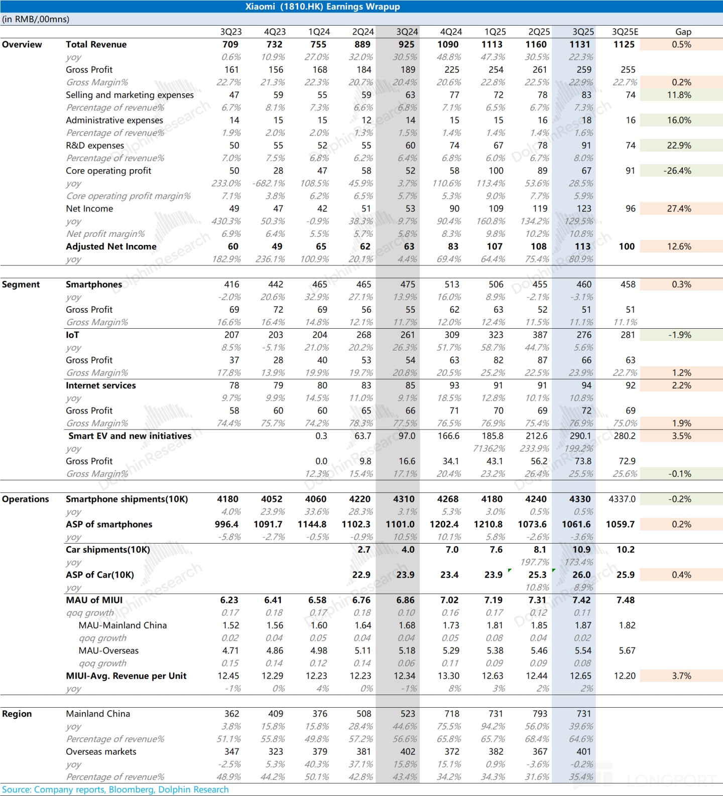 以下为海豚君整理的小米 2025 年第三季度的财报电话会纪要,财报解读请移步《小米:补贴退了,汽车真撑得起门面?》