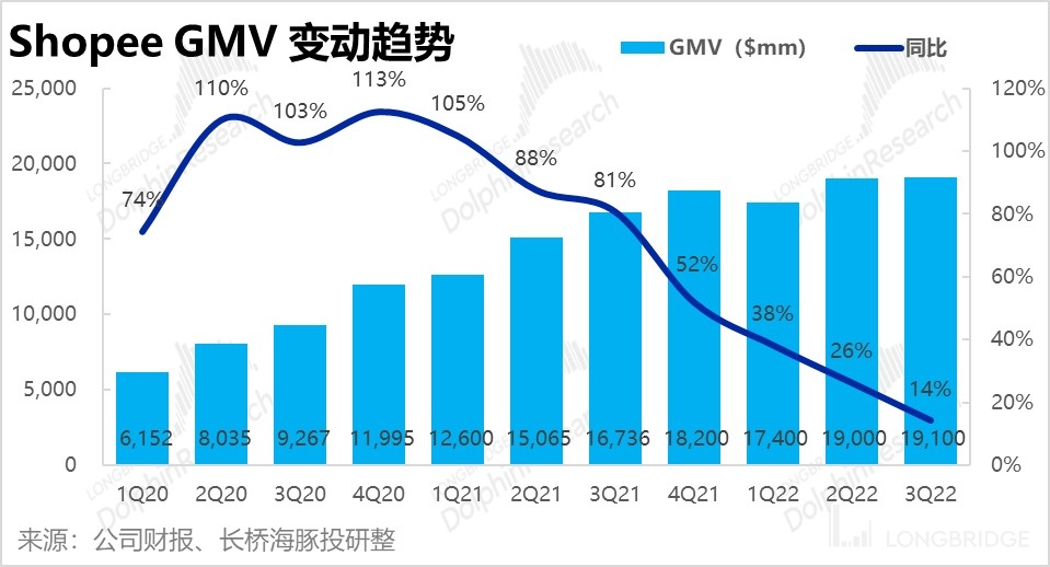 由于集团游戏板块已经烂透,市场对其也已不抱希望。海豚君认为,市场核心关注的点只剩电商板块的减亏速度,甚至连 GMV 的增长重要性也已下滑。因此,在公司接连推出巴西以外的其他南美国家本地市场(还保留跨境业务),且在剩余的东南亚市场也大幅裁员并显著提高变现率后,原本已增长神话著称的 Shopee 本季 GMV 增长也已完全停滞,但对此市场大概率也会 look through,下文将分析的盈利情况更为重要。