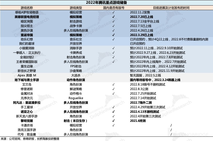 海外市场则表现不错,逆势增长 3%,在整体游戏中的收入占比提到到 27%。虽然《PUBG Mobile》下滑不少,但因为 8 月在海外推出了《幻塔》(完美研发),再加上《VALORANT》流水创新高、《部落冲突》内容大更新热度回升,因此在全球同比下滑近 20% 的情况下,腾讯海外游戏的抗压力相当不错。接下来预计安排上线的重点自研游戏有《Clash Mini》、《王者荣耀国际版》、《ValorantM》,同时代理《阿凡达:重返潘多拉》(祖龙研发)