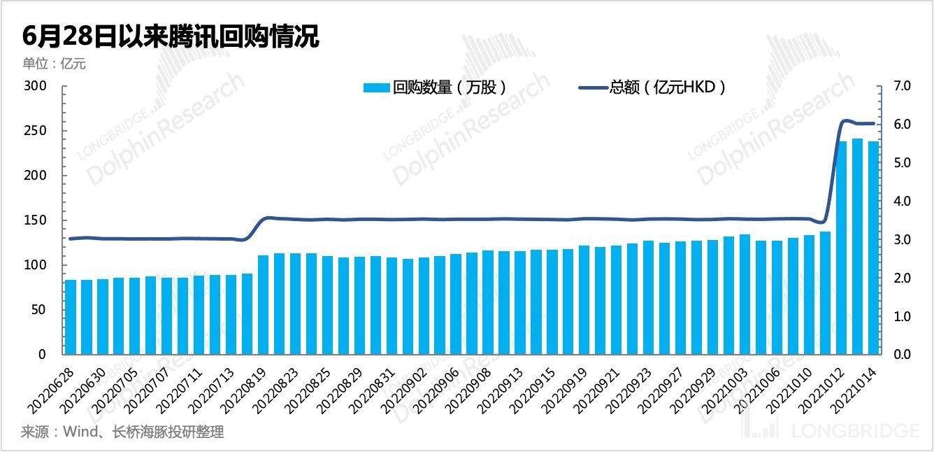 从 6 月 28 日至 10 月 14 日,腾讯已经回购 6000 多万股股票,累计动用超 180 亿港元,在财报敏感期之后,腾讯可能会继续回购动作。