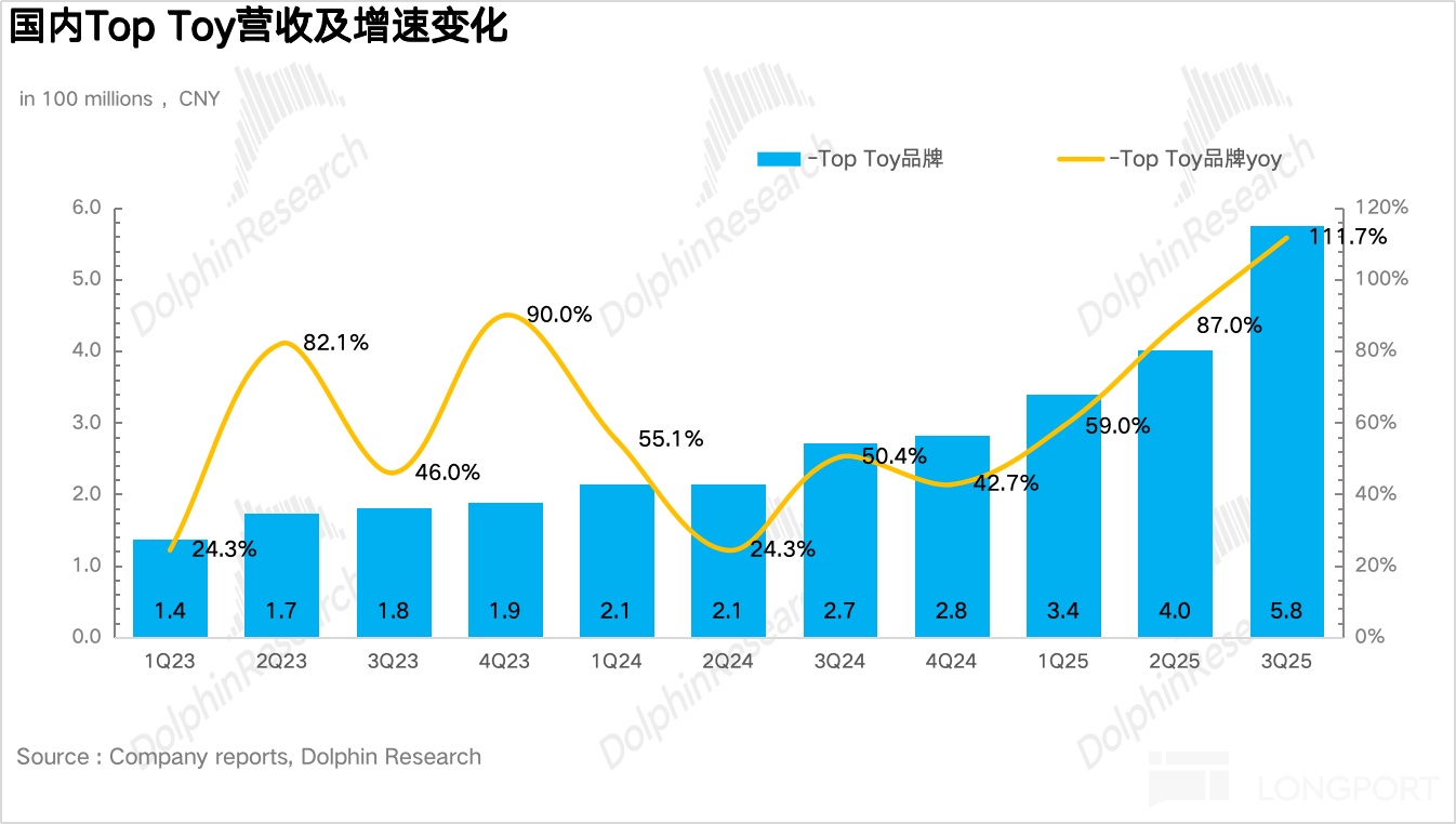 TOP TOY 作为名创旗下的潮玩品牌,三季度实现营收 5.8 亿元,同比增长 112%,表现非常亮眼,单季度增速达到了近三年以来新高。由于近期 Top Toy 递交了港股招股书,海豚君这次结合招股书里的信息再展开聊一下对 Top Toy 业务的看法: