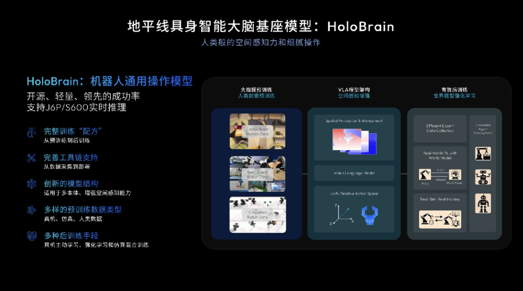 地平线也要把汽车领域的故事复刻到整个机器人行业,大会发布了两大基座模型,HoloMotion(具身小脑)和HoloBrain(具身大脑),填补了目前机器人行业从“感知”到“实时控制”之间的算法断层。