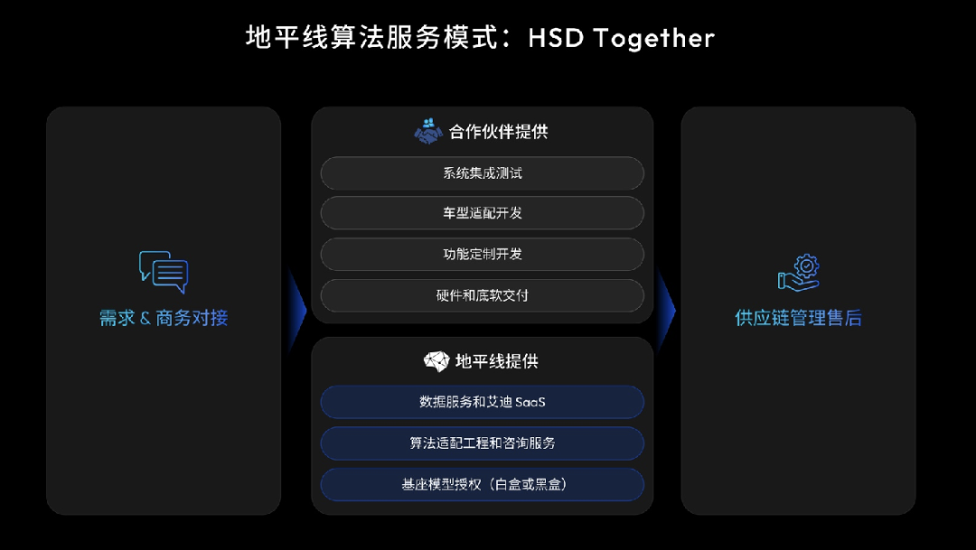 地平线是靠算法和芯片的极致适配来“挤水分”,软件端层面的“开源”是核心要素,通过推出HSD Together算法服务模式,提供基础模型,合作伙伴做工程适配。