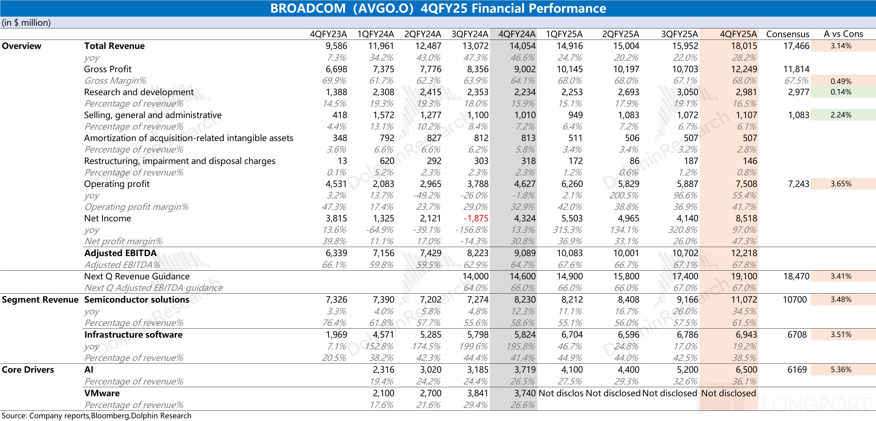 以下为海豚君整理的博通 AVGO 2025 财年第四季度的财报电话会纪要,财报解读请移步《博通:叫板英伟达,结果先锋自己先怂了?》