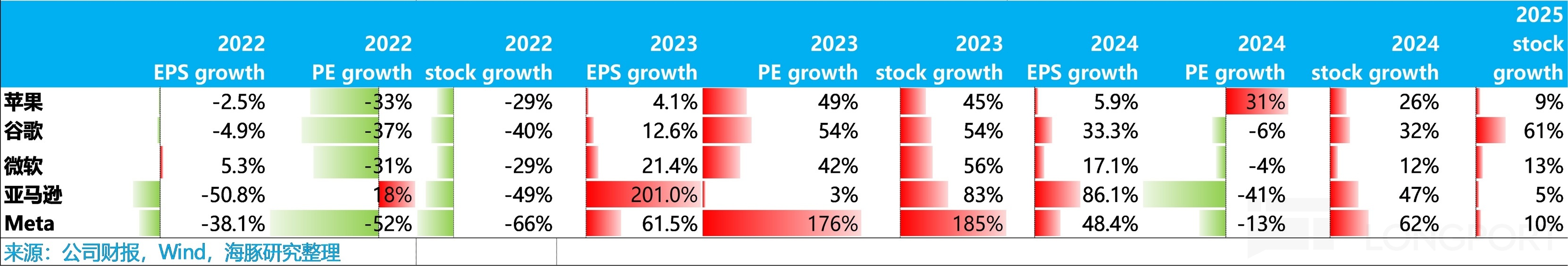 收入增长停滞或放缓 + 利润率收缩夹击,EPS 必然会加速放缓,这样就等于完全逆转了这三年巨头超额收益的底层支撑——收入加速增长、EPS 比收入增长更高的规模化优势。