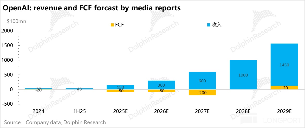 海豚君注意到,当下的 OpenAI 收入年化接近 200 亿美金,体量已不算小,但似乎收入做大过程中,亏损的斜率更高。