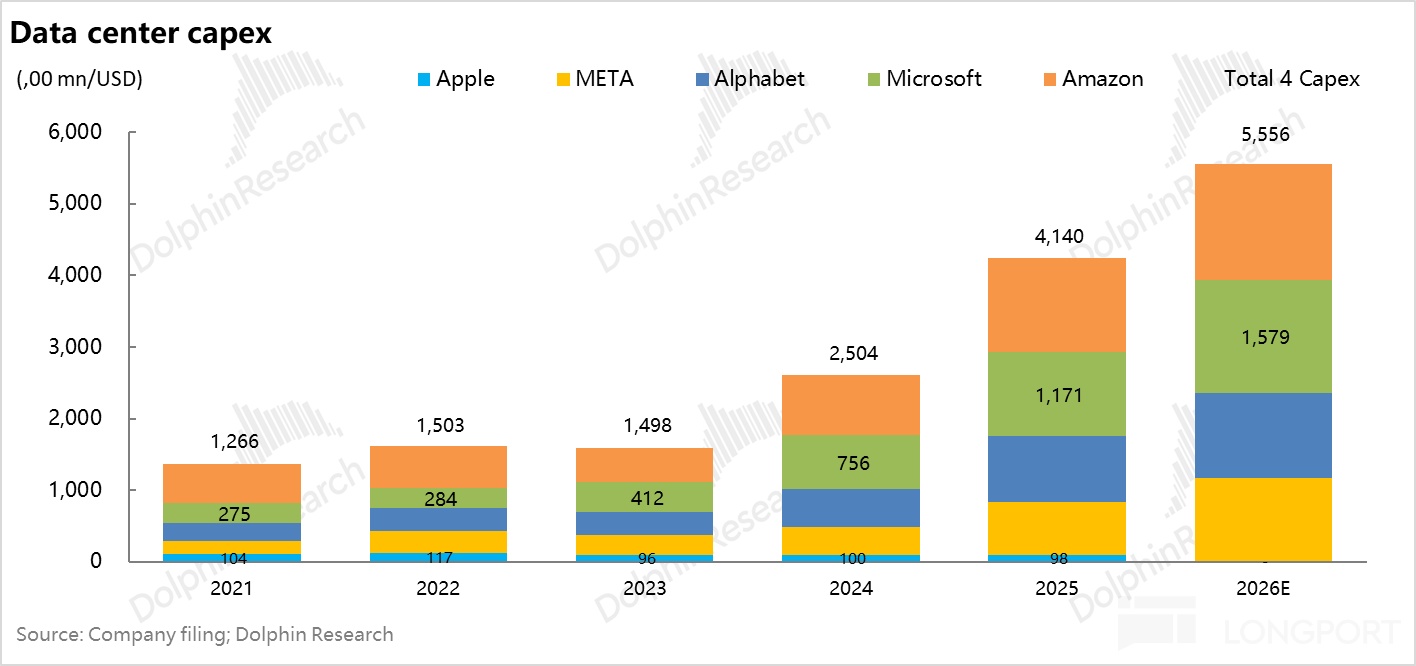 且 AI 投入早期阶段,除了微软之外的折旧费虽然有所拉升,但由于收入加速增长,这些新增的费用基本能被有效摊销。