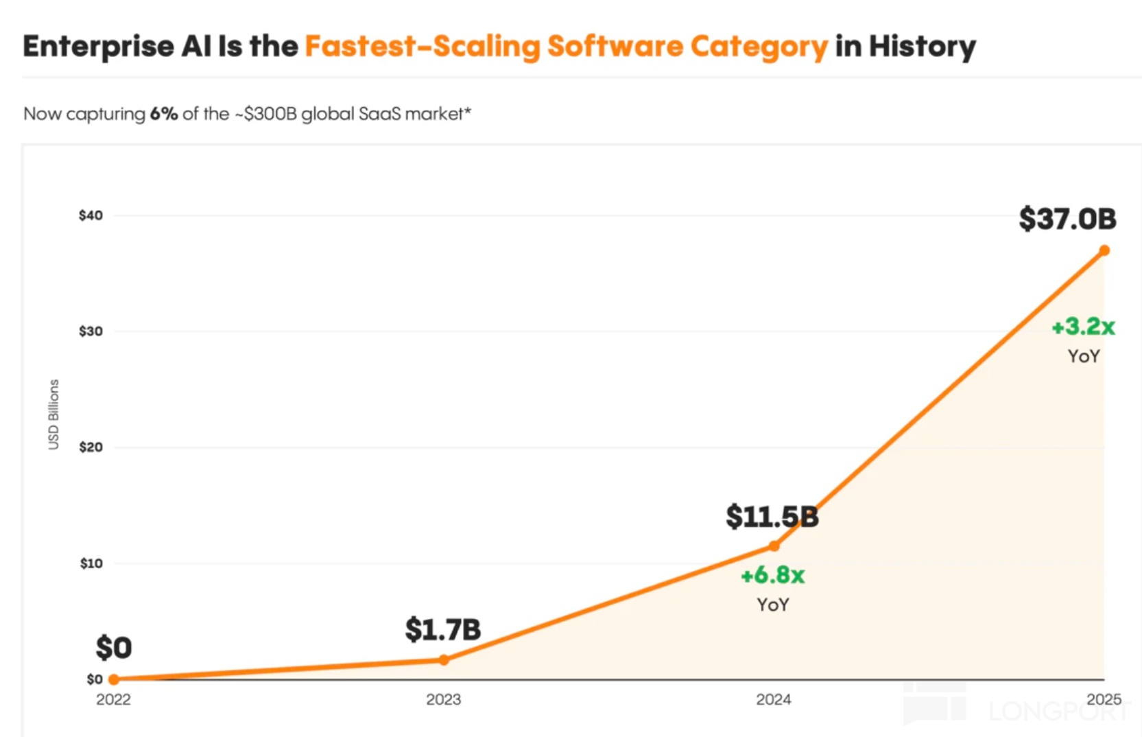 按目前的增长斜率,2026 年按同比 150-200% 的增长来算,整体 to B 方向(含基础模型 +AI SaaS)26 年应该能达到 1000 亿美金,因基数小,增长看起来更加速度。