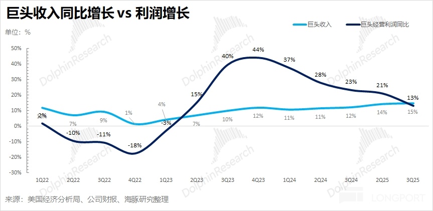 结果是,九个季度后,巨头经营利润率首次下滑,巨头们首次出现了利润增长慢于收入增长。
