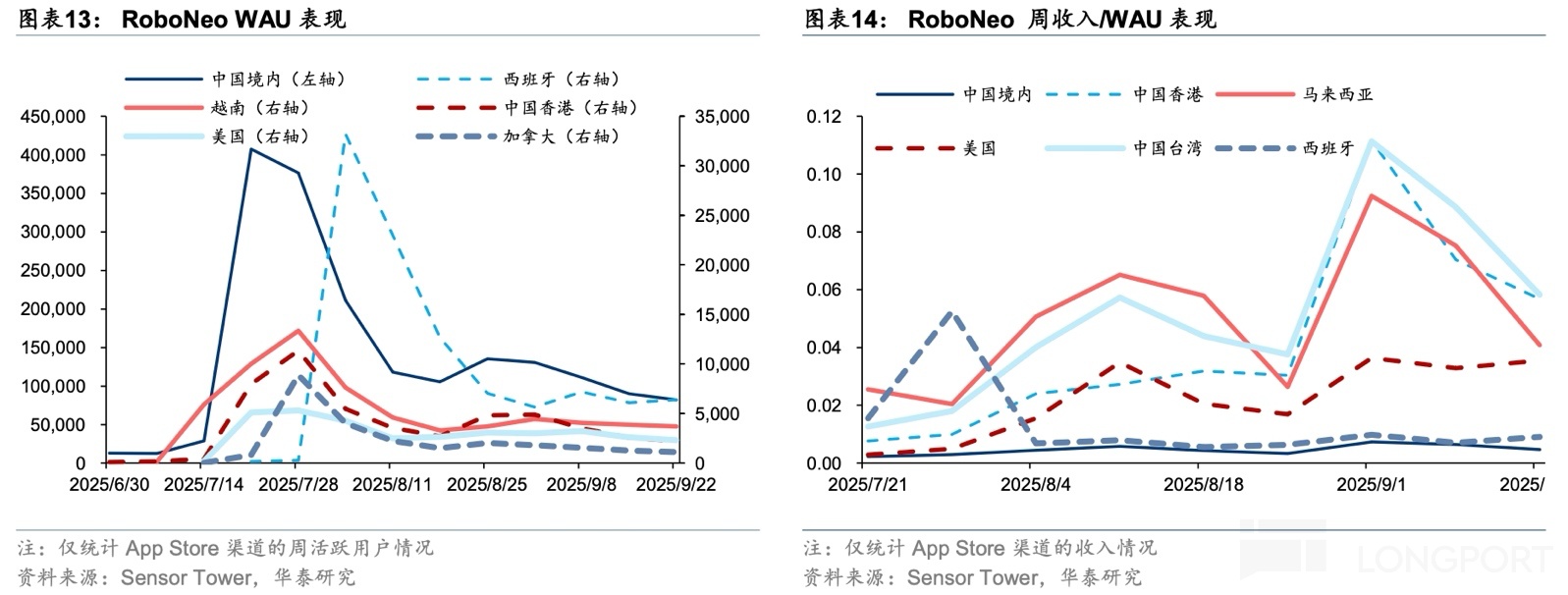2)RoboNeo 的变现情况,境内外表现并不完全相同,本质上还是与用户对生产工具的付费意愿和当地竞争情况有关。内地市场虽没有 Nano Banana 的普遍竞争,但自身付费意愿低,且类似的同行产品众多,因此变现力和用户规模趋势一样相当低迷。但海外市场上,尤其是文化相似的特定领域,如中国台湾、中国香港,或许是由于对特定区域的本地化运营,弹性相当突出。