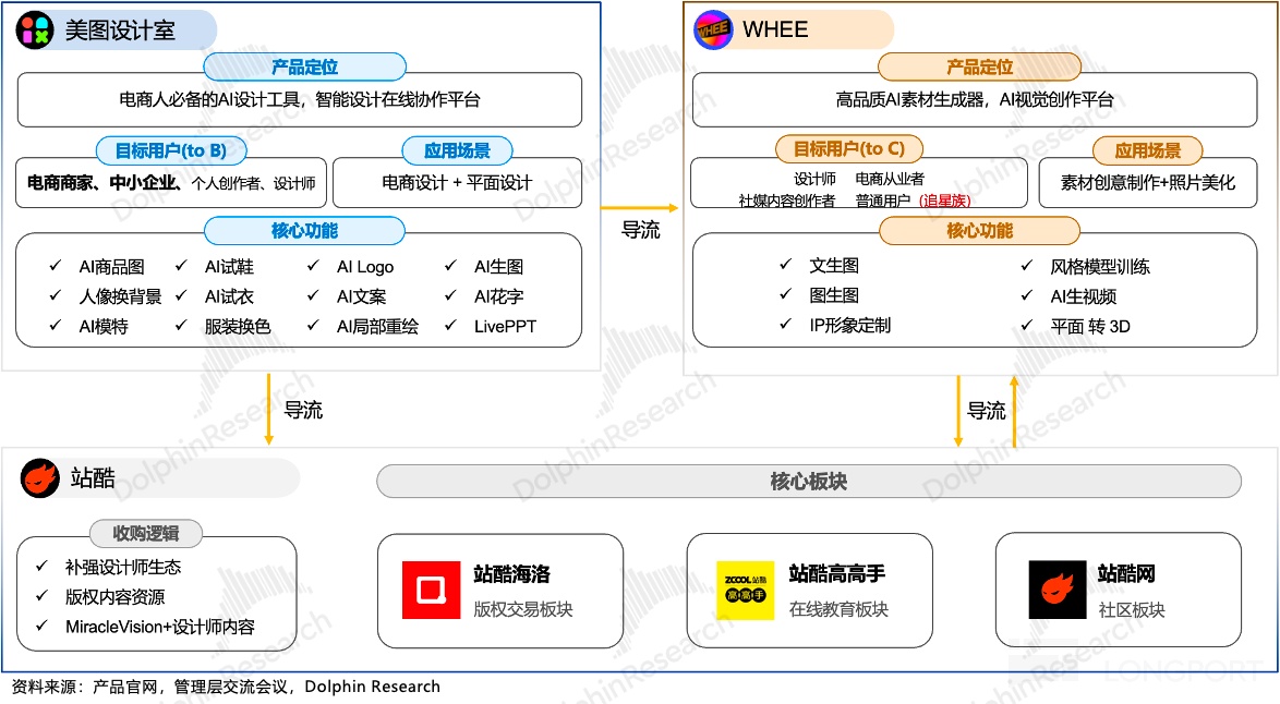 (3)站酷像是“数据库”,作为 2024 年收购的战略资产,凭借 1700 万设计师社区为 WHEE 导入专业用户并形成社区分享 (工作流) 背书,同时为 WHEE 创作者提供二次创作素材;依靠站酷海洛超 4 亿正版素材库未来将作为美图设计室用户的可选增值服务。