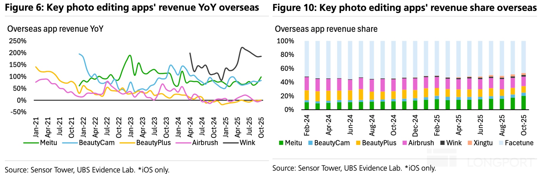 根据 UBS 十月跟踪数据显示,海外增速方面,Meitu, Beautycam 收入同比增长 98%/83%;BeautyPlus, Airbrush 由于高基数收入增速维稳,同比增长 1%/-2%。收入维持稳定。