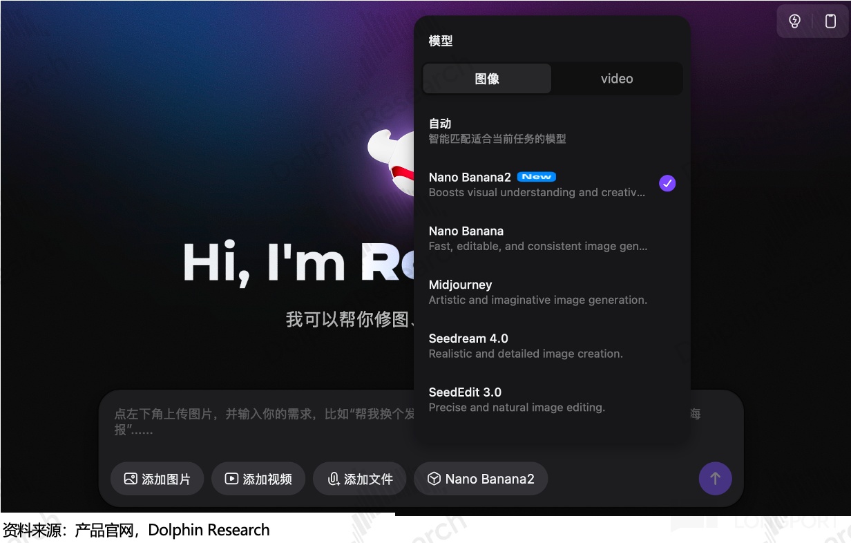 通过标准化接口,RoboNeo 主要集成了 Nano Banana pro 等多家第三方基座模型,并接入自研的 Miracle Vision 视觉大模型,整体更像一个图片模型的分发商。