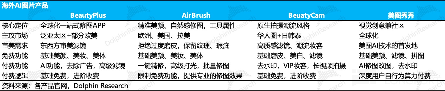 该节将着重论述产品侧的竞争情况,下篇会着重讨论美图对大模型是否具备抵御能力。