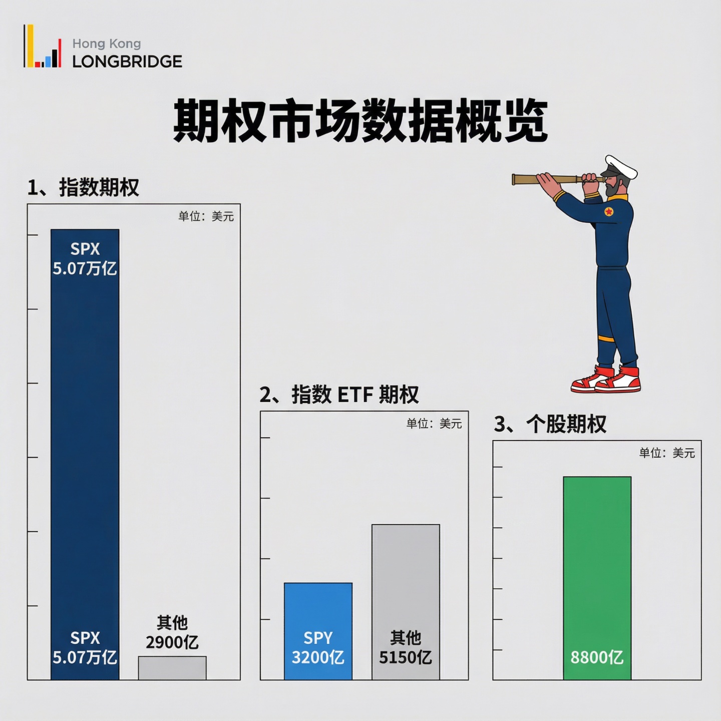 其中,约 5 万亿美元与$标普 500 指数(.SPX.US)(SPX)挂钩,另有 8800 亿美元与咱们日常交易的个股期权相关。