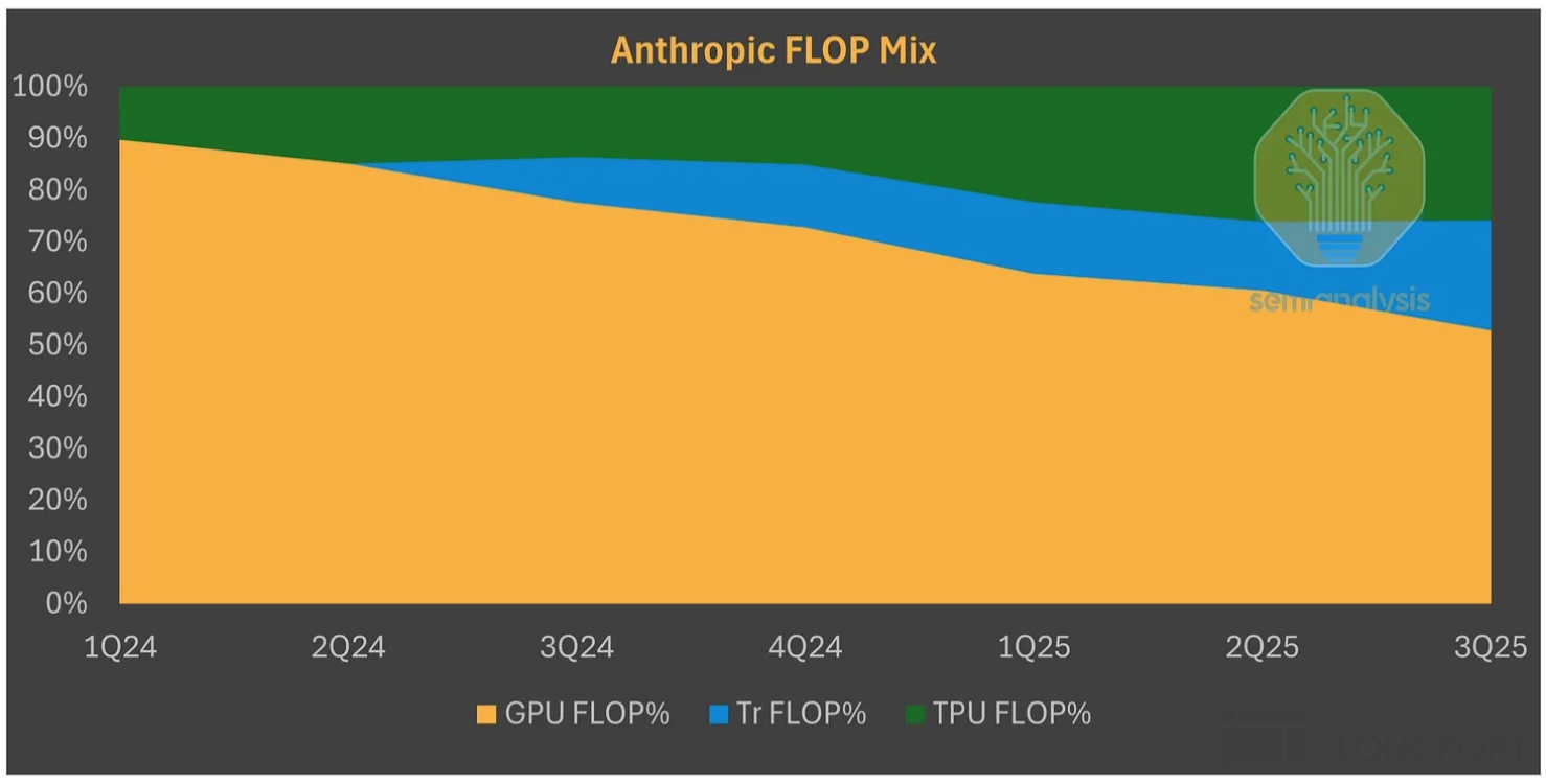 这里面的特殊之处在于,在 Anthropic 预定的近 100 万块 TPU 上(第一笔 40 万块 + 第二笔 40-50 万块),Google 并未染指 TPU 硬件收入部分。海豚君认为,至少在与英伟达 idia 合作密切的头部厂商上,Google 还是更倾向于不赚所谓的 “铲子钱”。